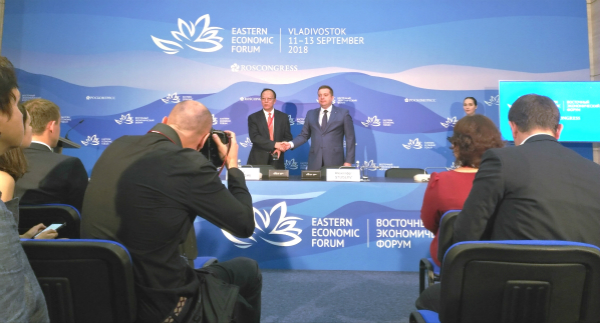2018年9月11日,在第四屆東方經(jīng)濟(jì)論壇期間,中國(guó)文化藝術(shù)有限公司(下稱(chēng)“中藝公司”)與俄羅斯會(huì)展基金會(huì)(Roscongress)舉行戰(zhàn)略合作簽約儀式,就聯(lián)合推動(dòng)中俄文化藝術(shù)品跨境交易平臺(tái)項(xiàng)目達(dá)成協(xié)議。中藝公司董事長(zhǎng)呂長(zhǎng)河先生及俄羅斯會(huì)展基金會(huì)董事長(zhǎng)亞歷山大·斯圖格列夫先生作為雙方代表簽約,俄羅斯濱海邊疆區(qū)行政長(zhǎng)官與黑龍江省市相關(guān)領(lǐng)導(dǎo)等見(jiàn)證儀式。