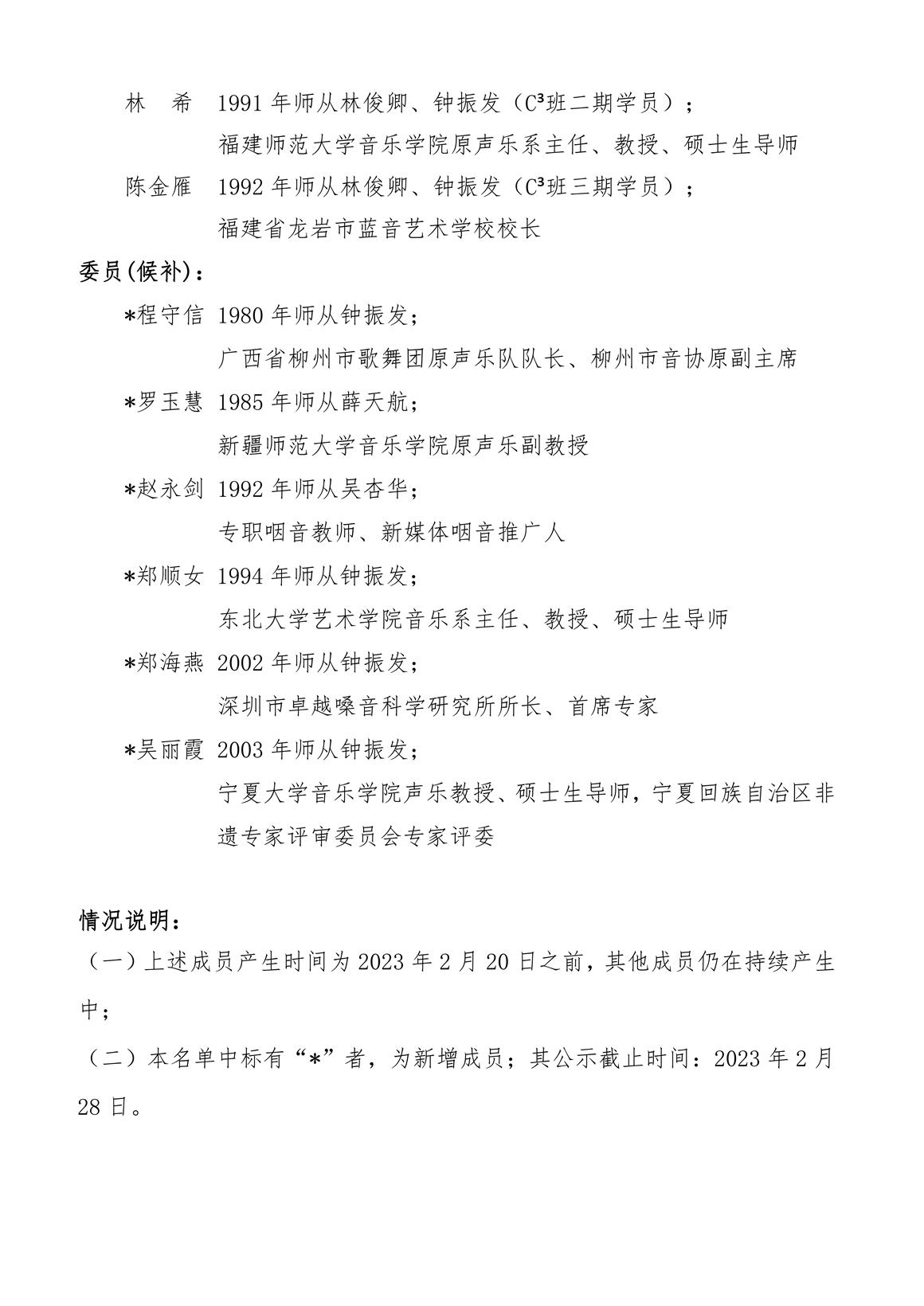 咽音振興專家委員會成員名單(截至2023年2月20日,持續(xù)更新中)