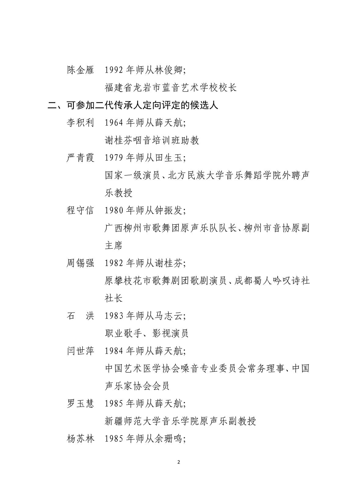 咽音練聲法傳承人定向評定候選人名單(一)
