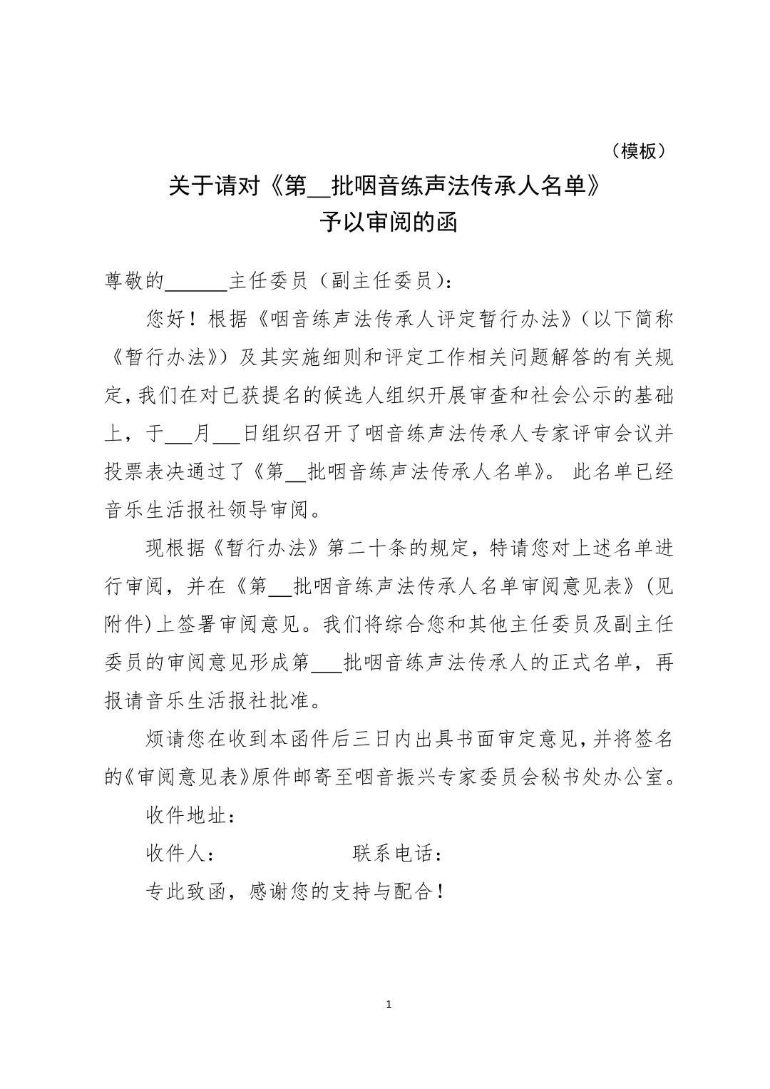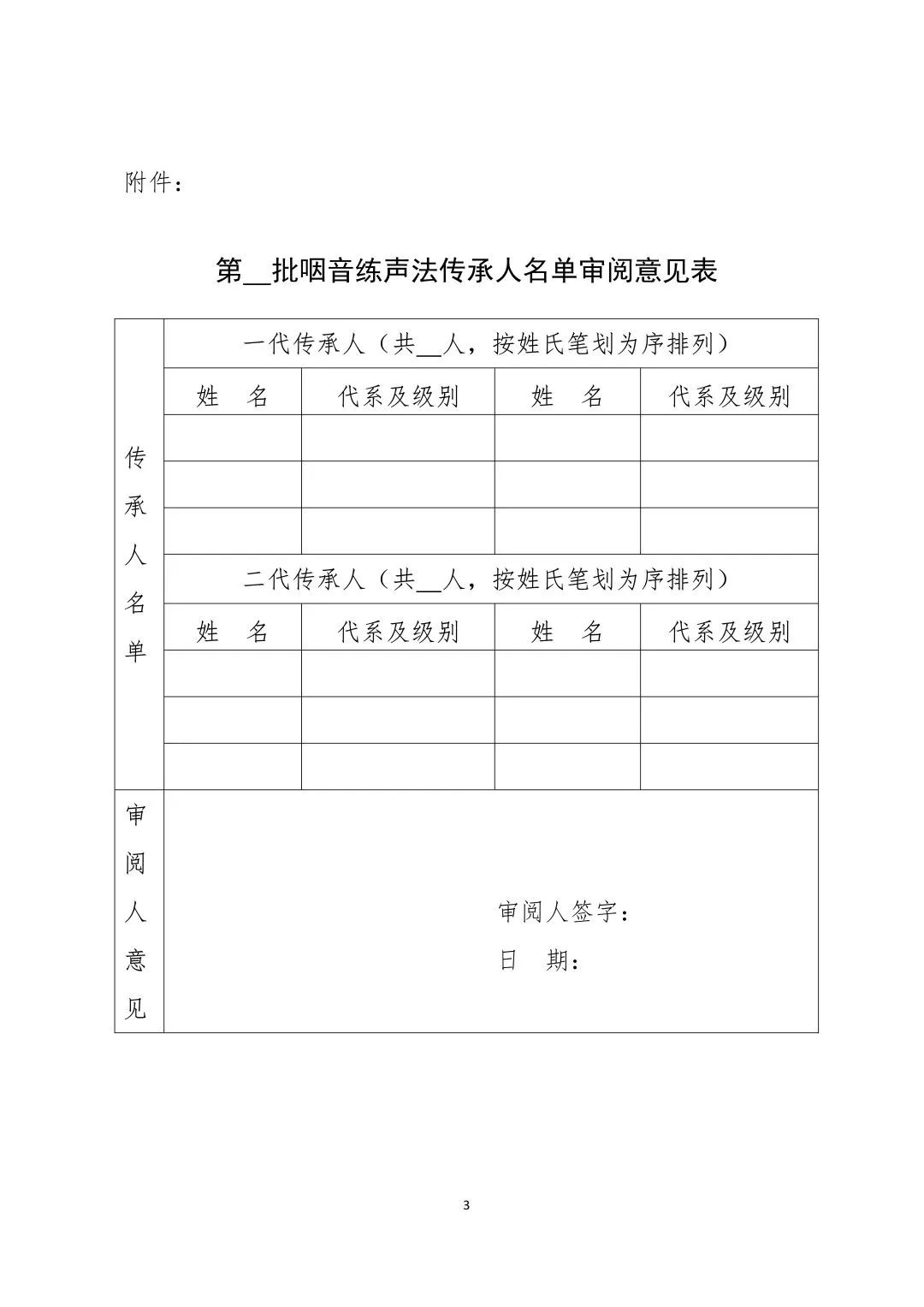 關(guān)于咽音練聲法傳承人名單的審閱函公示
