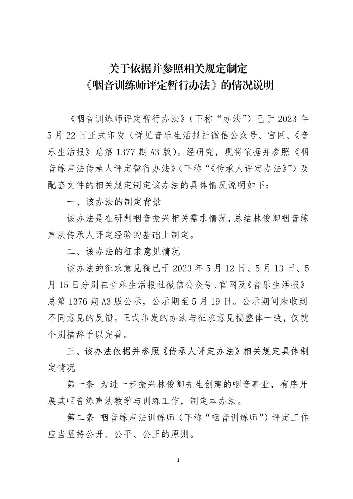 關(guān)于依據(jù)并參照相關(guān)規(guī)定制定《咽音訓(xùn)練師評定暫行辦法》的情況說明