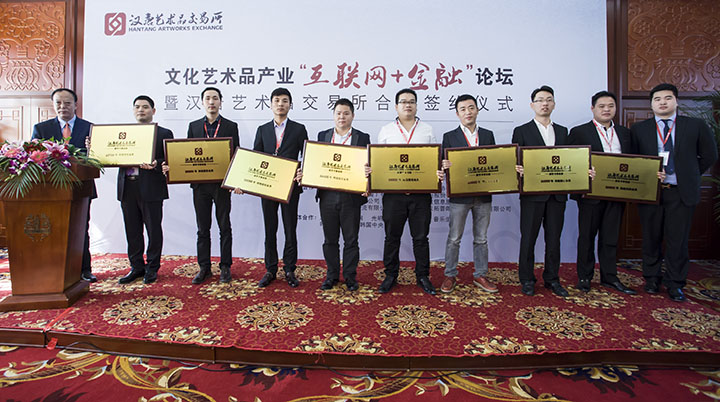 2015年10月29日,“文化藝術(shù)品產(chǎn)業(yè)‘互聯(lián)網(wǎng)+金融’論壇暨漢唐交易所授權(quán)與合作簽約儀式”在京隆重召開。文化部、中宣部、人民日?qǐng)?bào)相關(guān)領(lǐng)導(dǎo),各界代表、金融文化界精英、頂級(jí)行業(yè)專家、各大實(shí)力經(jīng)紀(jì)商等嘉賓齊聚北京民族文化宮,共論了“互聯(lián)網(wǎng)+”時(shí)代下文化藝術(shù)品產(chǎn)業(yè)現(xiàn)狀、未來和發(fā)展,見證了北京天首基金、北京浩正投資、人民日?qǐng)?bào)《人文歷史》、韓國友利銀行、韓國美術(shù)協(xié)會(huì)、韓國郵票商協(xié)會(huì)等幾十家中韓機(jī)構(gòu)與漢唐藝術(shù)品交易所合作的簽約。